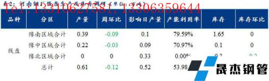 1、調(diào)研數(shù)據(jù)顯示,統(tǒng)計的河南地區(qū)10家建筑厚壁無縫鋼管樣本無縫厚壁鋼管廠家中,河南省無縫厚壁鋼管廠家線盤日均產(chǎn)量0.61萬噸,較上周產(chǎn)量減少0.12萬噸;線盤產(chǎn)能利用率53.98%,較上周下降16.44%。