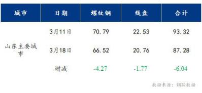 本周山東市場建筑厚壁無縫鋼管社會庫存繼續(xù)回落,為庫存拐點(diǎn)出現(xiàn)以來的第4周降庫。根據(jù)調(diào)研,本周庫存總量87.28萬噸,較上周下降6.04萬噸,降幅6.47%,周環(huán)比降幅加快。具體情況如下:本周山東13個主要城市螺紋鋼66.52萬噸,較上周下降4.27萬噸;盤螺20.76萬噸,較上周下降1.77萬噸。