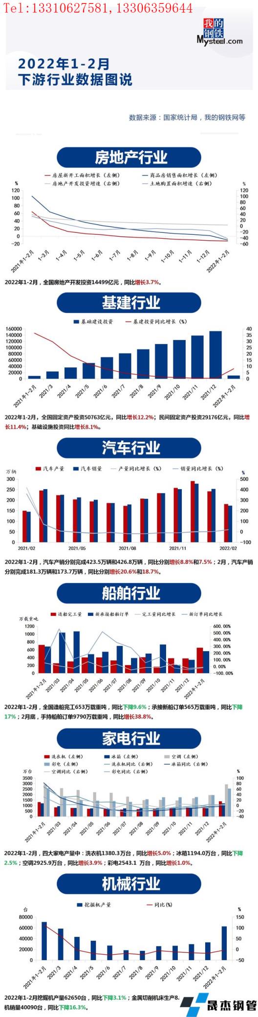 匯總了2022年1-2月部分下游用鋼行業的運行情況。