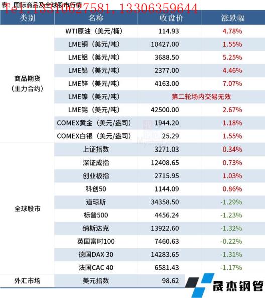 免責聲明:本網站(山東聊城晟杰無縫鋼管廠www.nfboat.cn)刊載的“2022年03月24日早讀:黑色期貨夜盤全線上漲,國際原油金屬期價大漲”等均源于網絡,版權歸原作者所有,且僅代表原作者觀點,本文所載信息僅供參考。轉載僅為學習與交流之目的,如無意中侵犯您的合法權益,請及時聯系刪除。本網站刊登此篇文章并不意味著本站贊同其觀點或證實其內容的真實性,我們不對其科學性、嚴肅性等作任何形式的保證。如果侵犯了您的版權,請盡快聯系我們予以撤銷,謝謝合作!