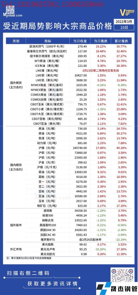 免責聲明:本網站(山東聊城晟杰無縫鋼管廠www.nfboat.cn)刊載的“受近期局勢影響大宗商品價格一覽表(3月23日)”等均源于網絡,版權歸原作者所有,且僅代表原作者觀點,本文所載信息僅供參考。轉載僅為學習與交流之目的,如無意中侵犯您的合法權益,請及時聯系刪除。本網站刊登此篇文章并不意味著本站贊同其觀點或證實其內容的真實性,我們不對其科學性、嚴肅性等作任何形式的保證。如果侵犯了您的版權,請盡快聯系我們予以撤銷,謝謝合作!