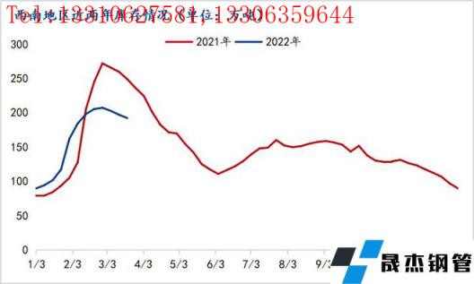 三月份西南地區(qū)建筑厚壁無縫鋼管窄幅震蕩運行,下游復工復產(chǎn)不及預(yù)期、全國疫情再次擴散、俄烏局勢沖突未息等多重因素疊加,放緩了季節(jié)性需求釋放的速度,西南整體去庫存速度同比偏緩慢。筆者就西南地區(qū)庫存數(shù)據(jù)情況作簡要分析。