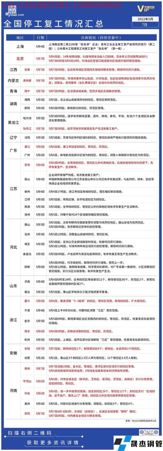 免責聲明:本網站(山東聊城晟杰無縫鋼管廠www.nfboat.cn)刊載的“疫情影響丨全國停工復工情況匯總(5月7日)”等均源于網絡,版權歸原作者所有,且僅代表原作者觀點,本文所載信息僅供參考。轉載僅為學習與交流之目的,如無意中侵犯您的合法權益,請及時聯系刪除。本網站刊登此篇文章并不意味著本站贊同其觀點或證實其內容的真實性,我們不對其科學性、嚴肅性等作任何形式的保證。如果侵犯了您的版權,請盡快聯系我們予以撤銷,謝謝合作!