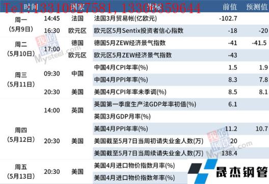 點評:國家統計局將于近日發布4月份消費者價格指數(CPI)數據與工業生產者價格指數(PPI)數據。多家機構預測,由于蔬菜、豬肉等食品價格走高,4月份CPI同比將小幅走高,漲幅或在2%左右。由于國內保供穩價措施持續發力,預計4月份PPI同比延續回落態勢,漲幅或在8.0%左右。