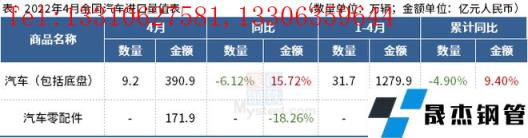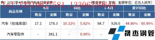 免責聲明:本網站(山東聊城晟杰無縫鋼管廠www.nfboat.cn)刊載的“海關總署:4月中國出口汽車17.1萬輛,同比增長10.32%”等均源于網絡,版權歸原作者所有,且僅代表原作者觀點,本文所載信息僅供參考。轉載僅為學習與交流之目的,如無意中侵犯您的合法權益,請及時聯系刪除。本網站刊登此篇文章并不意味著本站贊同其觀點或證實其內容的真實性,我們不對其科學性、嚴肅性等作任何形式的保證。如果侵犯了您的版權,請盡快聯系我們予以撤銷,謝謝合作!