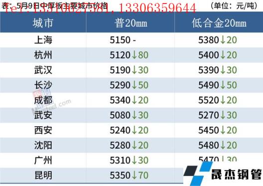 中厚板:5月9日,全國24個主要城市20mm普板均價5261元/噸,較上一交易日下跌27元/噸。今日市場成交低價尚可,總體資源量由于疫情影響到貨較少,社會庫存沒有繼續增加。從目前的情況看,無論從無縫厚壁鋼管廠家生產成本或是貿易商現貨成本去考慮,大幅跟跌期貨的意愿并不強。綜合來看,預計10日全國中厚板價格小幅下跌。