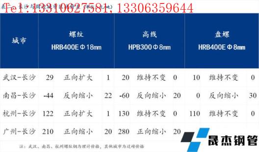 統一為理計單位后,武漢高于長沙29元/噸,南昌低于長沙44元/噸,杭州高于長沙122元/噸,廣州高于長沙210元/噸。