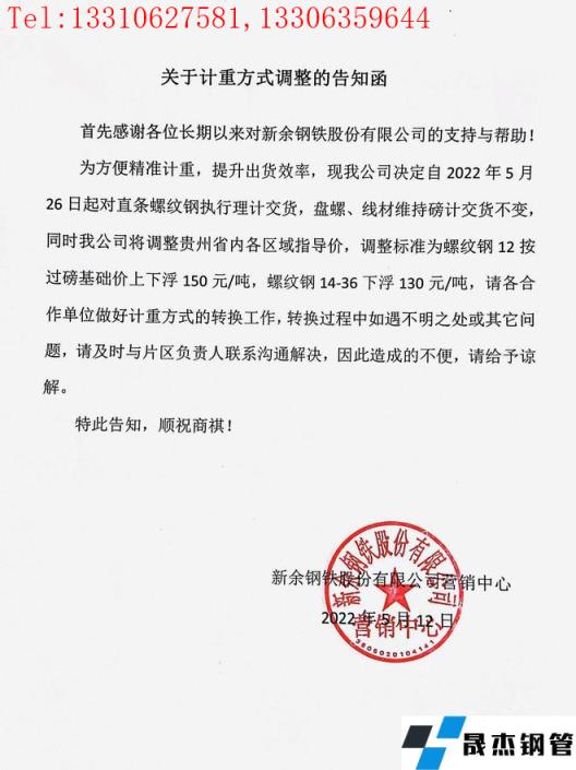 免責(zé)聲明:本網(wǎng)站(山東聊城晟杰無縫鋼管廠www.nfboat.cn)刊載的“新余鋼鐵股份有限公司關(guān)于對貴州區(qū)域計(jì)重方式調(diào)整的告知函”等均源于網(wǎng)絡(luò),版權(quán)歸原作者所有,且僅代表原作者觀點(diǎn),本文所載信息僅供參考。轉(zhuǎn)載僅為學(xué)習(xí)與交流之目的,如無意中侵犯您的合法權(quán)益,請及時(shí)聯(lián)系刪除。本網(wǎng)站刊登此篇文章并不意味著本站贊同其觀點(diǎn)或證實(shí)其內(nèi)容的真實(shí)性,我們不對其科學(xué)性、嚴(yán)肅性等作任何形式的保證。如果侵犯了您的版權(quán),請盡快聯(lián)系我們予以撤銷,謝謝合作!