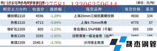 ◎ 5月12日,全國主港鐵礦石成交53.00萬噸,環比減55.1%;237家主流貿易商建材成交12.30萬噸,環比減30.5%。