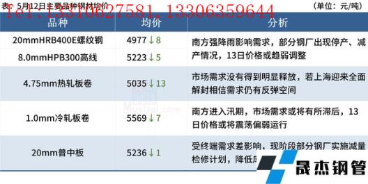 ◎ 從5月6日至5月11日期間,廣東14家無縫厚壁鋼管廠家多次下調廢鋼采購價格,最高跌幅達150元/噸。在暴雨的影響下,部分無縫厚壁鋼管廠家考慮到成品庫存壓力,清遠地區多數電弧爐無縫厚壁鋼管廠家陸續減產,從原先的生產18-20小時到目前的8-12個小時,生產時間大幅度縮短,維持最低生產,個別無縫厚壁鋼管廠家還出現了停產檢修。詳情>>
