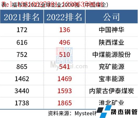 免責聲明:本網站(山東聊城晟杰無縫鋼管廠www.nfboat.cn)刊載的“中國7家煤企上榜福布斯2022全球企業2000強”等均源于網絡,版權歸原作者所有,且僅代表原作者觀點,本文所載信息僅供參考。轉載僅為學習與交流之目的,如無意中侵犯您的合法權益,請及時聯系刪除。本網站刊登此篇文章并不意味著本站贊同其觀點或證實其內容的真實性,我們不對其科學性、嚴肅性等作任何形式的保證。如果侵犯了您的版權,請盡快聯系我們予以撤銷,謝謝合作!