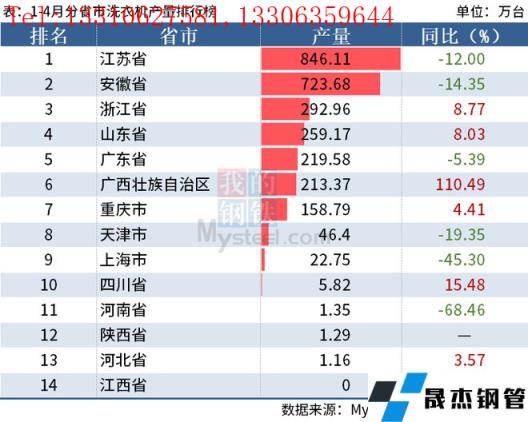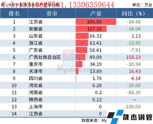 從分省市數(shù)據(jù)來看,4月江蘇、安徽洗衣機(jī)產(chǎn)量超100萬臺,其中江蘇省以產(chǎn)量206.06萬臺排名第一,安徽省產(chǎn)量157.16萬臺排名第二,山東省產(chǎn)量66.32萬臺排名第三。