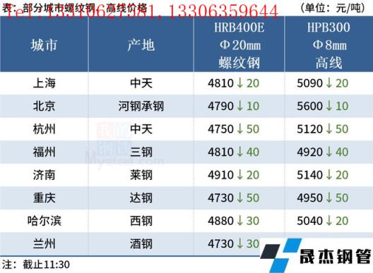 ◎杭州:19日早盤建材市場價格統跌50,螺沙4740中4720西城4700浙江華宏4630江蘇鑌鑫4630長達抗震4700線材中天5120亞新5020聯鑫黃海盤螺4980。(單位:元/噸)
