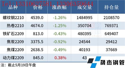 免責聲明:本網站(山東聊城晟杰無縫鋼管廠www.nfboat.cn)刊載的“2022年05月19日午報:鋼價全線下跌,黑色期貨低開高走”等均源于網絡,版權歸原作者所有,且僅代表原作者觀點,本文所載信息僅供參考。轉載僅為學習與交流之目的,如無意中侵犯您的合法權益,請及時聯系刪除。本網站刊登此篇文章并不意味著本站贊同其觀點或證實其內容的真實性,我們不對其科學性、嚴肅性等作任何形式的保證。如果侵犯了您的版權,請盡快聯系我們予以撤銷,謝謝合作!
