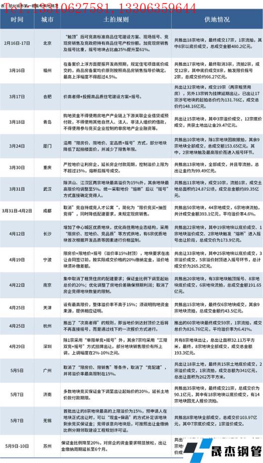 免責聲明:本網站(山東聊城晟杰無縫鋼管廠www.nfboat.cn)刊載的“18城完成首輪集中供地:溢價率提升,成交量下降”等均源于網絡,版權歸原作者所有,且僅代表原作者觀點,本文所載信息僅供參考。轉載僅為學習與交流之目的,如無意中侵犯您的合法權益,請及時聯系刪除。本網站刊登此篇文章并不意味著本站贊同其觀點或證實其內容的真實性,我們不對其科學性、嚴肅性等作任何形式的保證。如果侵犯了您的版權,請盡快聯系我們予以撤銷,謝謝合作!