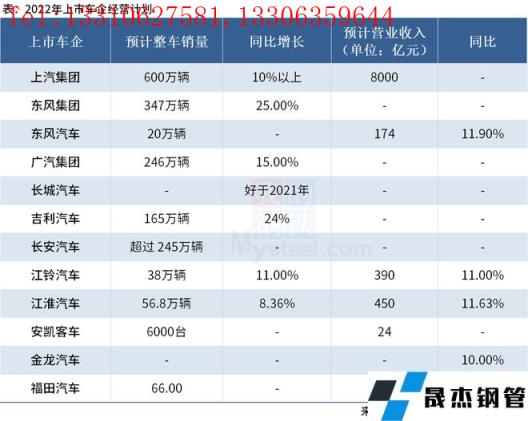 免責(zé)聲明:本網(wǎng)站(山東聊城晟杰無縫鋼管廠www.nfboat.cn)刊載的“12家上市車企公布2022年經(jīng)營計(jì)劃”等均源于網(wǎng)絡(luò),版權(quán)歸原作者所有,且僅代表原作者觀點(diǎn),本文所載信息僅供參考。轉(zhuǎn)載僅為學(xué)習(xí)與交流之目的,如無意中侵犯您的合法權(quán)益,請及時(shí)聯(lián)系刪除。本網(wǎng)站刊登此篇文章并不意味著本站贊同其觀點(diǎn)或證實(shí)其內(nèi)容的真實(shí)性,我們不對其科學(xué)性、嚴(yán)肅性等作任何形式的保證。如果侵犯了您的版權(quán),請盡快聯(lián)系我們予以撤銷,謝謝合作!