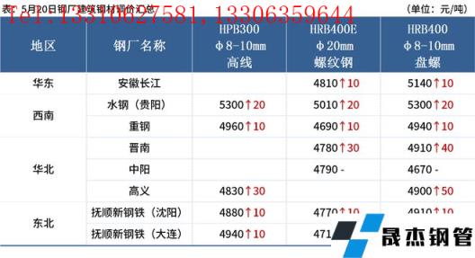◎ 中天5月下旬建材調價:螺紋鋼下調100元/噸,HRB400材質Φ16-25mm規格執行價格5000元/噸;高線平穩,HPB300材質Φ6.5-12mm規格執行價格5300元/噸;盤螺平穩,HRB400材質Φ8-12mm規格執行價格5300元/噸;帶鋼格下調100元/噸,ZT03材質Φ2.5mm規格執行價格5100元/噸。