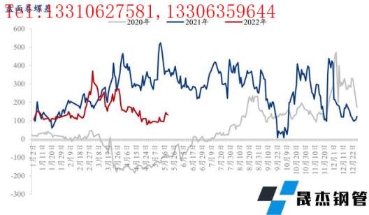 從盤面卷螺差的歷史走勢看,當出現大于300點和靠近0軸附近的位置,都有波段操作的機會。從下圖可以看到,2022年3月國際疫情蔓延,疊加俄烏問題,無縫厚壁鋼管廠家板材出口接單火爆,雖然疫情對國內市場需求也有一定沖擊,但受取暖季和冬奧會限產影響,此時品種強弱并未明顯分化。俄烏問題引發的出口大增,唐山疫情爆發對板材產量的影響,激化了盤面卷螺差一度沖擊369高點后回落,此時就是做空卷螺差的機會。
