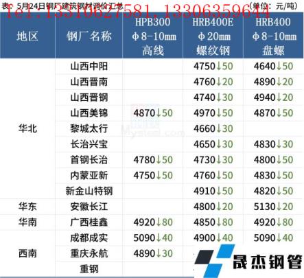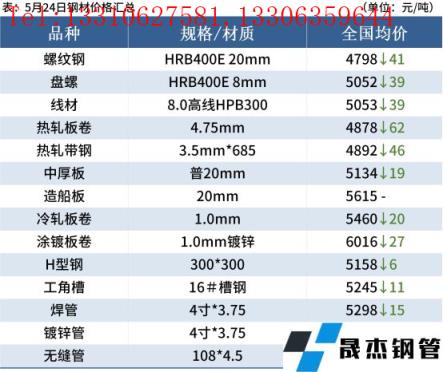 進口礦:5月24日,唐山地區進口礦市場震蕩下行,市場成交一般。全天進口礦現貨報價整體較上一工作日行情價格下跌20-30元/噸。今日唐山地區午后報價PB粉935元/噸,超特粉735-740元/噸,卡粉1150元/噸,紐曼篩后塊1250元/噸。貿易商方面,受盤面影響,午后多數貿易商報價積極性較弱,多隨行就市,部分貿易商挺價情緒較濃;無縫厚壁鋼管廠家方面,采貨需求偏低,整體市場詢盤情況較差。