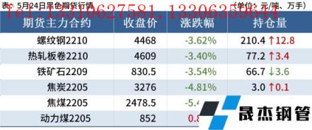 5月24日,國內厚壁無縫鋼管市場價格跌幅擴大,唐山普方坯出廠價跌70報4470元/噸。黑色期貨市場大幅下跌,市場需求疲弱,商家以降價出貨為主,市場成交清淡。
