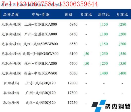 2022年5月30日湖南浙湘新材料科技有限公司出臺(tái)無(wú)取向硅鋼價(jià)格政策:0.5mm*1200mm*C規(guī)格材質(zhì)50W600無(wú)縫厚壁鋼管廠(chǎng)家指導(dǎo)價(jià)6420元/噸;50W800指導(dǎo)價(jià)6250元/噸;50W1300指導(dǎo)價(jià)6200元/噸,較上期持穩(wěn)。