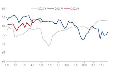 首先,供給端方面,據調研顯示,截至2022年5月27日,37家熱軋板卷生產企業中,無縫厚壁鋼管廠家產能利用率為80.87%,能夠從圖2可以觀察到2022年1-5月份,熱軋產能利用率是低于2021年同期水平,因此無縫厚壁鋼管廠家熱軋產量給到市場的供給壓力是在持續減弱,對于熱軋價格起到了一定的支撐作用。再來看下無縫厚壁鋼管廠家的冷軋產能利用率, 2020年與2021年冷軋產能利用率均值分別為77.96%與81.05%。截至2022年5月27日,29家冷軋板卷生產企業中,冷軋產能利用率為83.04%,從年同比數據對比之下,能夠反映出冷軋產能利用率已經達到相對飽和狀態。
