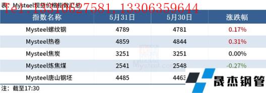 ◎ 5月31日,全國15家長、短流程代表無縫厚壁鋼管廠家廢鋼庫存總量83.30萬噸,較昨日降1.8萬噸,降0.22%;庫存周轉天9.3天,較昨日增0.5天;日均消耗4526.67噸,較昨日降2.58%;日均到貨量4439.26噸,較昨日降6.08%。