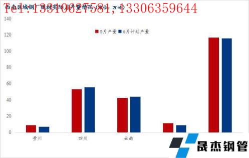 四川區(qū)域:五月四川區(qū)域無縫厚壁鋼管廠家線材實(shí)際產(chǎn)量53.27萬噸,六月計(jì)劃產(chǎn)量56萬噸,計(jì)劃產(chǎn)量增加2.73萬噸,環(huán)比增加5.12%。其中LG5月30號(hào)開始恢復(fù)正常生產(chǎn),產(chǎn)量有所增加。