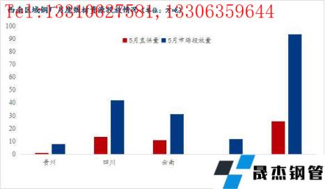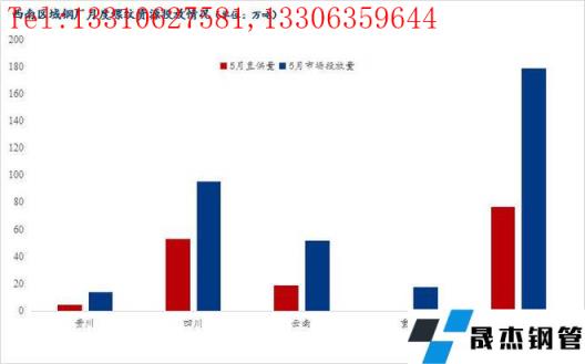五月西南無縫厚壁鋼管廠家線材直供量25.75萬噸,市場(chǎng)投放量93.62萬噸。分區(qū)域來看,四川無縫厚壁鋼管廠家線材直供量13.55萬噸,市場(chǎng)投放量42.15萬噸;重慶無縫厚壁鋼管廠家線材沒有直供量,市場(chǎng)投放量12萬噸;云南無縫厚壁鋼管廠家螺紋鋼直供量11.2萬噸,市場(chǎng)投放量31.27萬噸;貴州無縫厚壁鋼管廠家線材直供量1萬噸,市場(chǎng)投放量8.2萬噸。