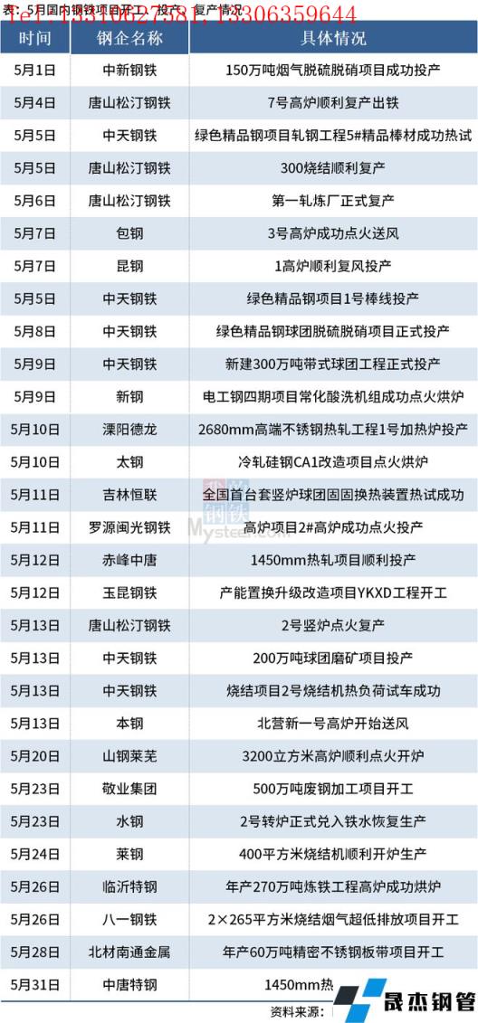免責聲明:本網站(山東聊城晟杰無縫鋼管廠www.nfboat.cn)刊載的“5月國內29個鋼鐵項目開工、投產或復產”等均源于網絡,版權歸原作者所有,且僅代表原作者觀點,本文所載信息僅供參考。轉載僅為學習與交流之目的,如無意中侵犯您的合法權益,請及時聯系刪除。本網站刊登此篇文章并不意味著本站贊同其觀點或證實其內容的真實性,我們不對其科學性、嚴肅性等作任何形式的保證。如果侵犯了您的版權,請盡快聯系我們予以撤銷,謝謝合作!