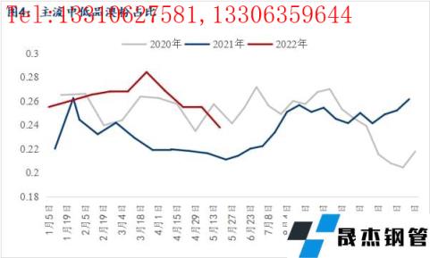 今年主流配比配比整體下降主要還是因?yàn)槔麧?rùn)持續(xù)受壓縮的影響,去年這個(gè)時(shí)候鋼企利潤(rùn)較好,無(wú)縫厚壁鋼管廠家為追求鐵水產(chǎn)量最大化原則,對(duì)主流中高品粉礦更加青睞,而今年局勢(shì)恰好相反,低利潤(rùn)下,鋼企主動(dòng)下調(diào)主流中高品粉礦配比以盡可能的降低原料段成本。