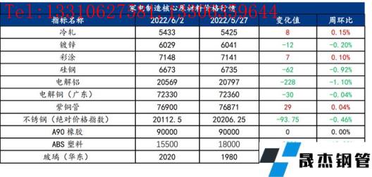 免責聲明:本網站(山東聊城晟杰無縫鋼管廠www.nfboat.cn)刊載的“家電原材料周報(5.30-6.2)”等均源于網絡,版權歸原作者所有,且僅代表原作者觀點,本文所載信息僅供參考。轉載僅為學習與交流之目的,如無意中侵犯您的合法權益,請及時聯系刪除。本網站刊登此篇文章并不意味著本站贊同其觀點或證實其內容的真實性,我們不對其科學性、嚴肅性等作任何形式的保證。如果侵犯了您的版權,請盡快聯系我們予以撤銷,謝謝合作!