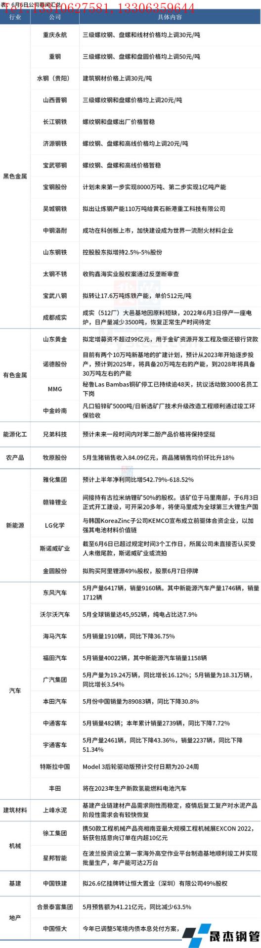 6月7日,匯總部分大宗商品相關(guān)企業(yè)要聞。
