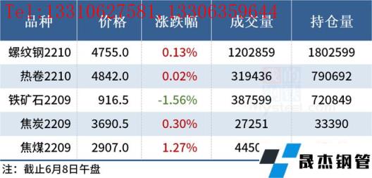 免責聲明:本網站(山東聊城晟杰無縫鋼管廠www.nfboat.cn)刊載的“2022年06月08日午報:鋼價漲跌互現,鐵礦石期貨下挫”等均源于網絡,版權歸原作者所有,且僅代表原作者觀點,本文所載信息僅供參考。轉載僅為學習與交流之目的,如無意中侵犯您的合法權益,請及時聯系刪除。本網站刊登此篇文章并不意味著本站贊同其觀點或證實其內容的真實性,我們不對其科學性、嚴肅性等作任何形式的保證。如果侵犯了您的版權,請盡快聯系我們予以撤銷,謝謝合作!