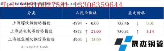分地區方面,上海螺紋鋼價格指數4894,持平0.0;上海熱軋板卷價格指數4873,上漲21.0。(單位:元/噸)