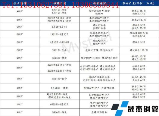 江蘇無縫厚壁鋼管廠家本周影響產量小幅減少,共計13家無縫厚壁鋼管廠家非正常生產,較上周檢修停產鋼企數量持平,目前鐵水影響產量較上周減少0.69萬噸 /日,粗鋼影響產量較上周持平,成材影響產量較上周減少1.05萬噸 /日。前期受疫情好轉及復工復產樂觀預期影響,市場情緒有所回暖,厚壁無縫鋼管市場價格也有小幅上漲。近期江蘇大廠生產成本有所下降,盈利情況有所好轉。具體情況及各主要品種日均影響產量(單位:萬噸)詳見下表: