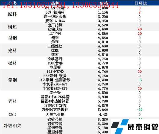 表:6月9日唐山鋼市主要品種價格一覽(單位:元/噸)