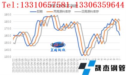 從月度均值表現(xiàn)來看,據(jù)研究中心監(jiān)測數(shù)據(jù)顯示,5月份,即期原料成本指數(shù)均值為168.4,較4月份下降6.1%;兩周原料庫存成本指數(shù)為178.0,較4月份上升1.8%;四周原料庫存成本指數(shù)為179.8,較4月份上升5.0%。同期,綜合無縫鋼管 厚壁鋼管價格指數(shù)震蕩下行,月均值為5208元/噸,較上月下降3.6%;5月份即期成本降幅大于成品材價格跌幅,因而即期鋼企盈利空間有所改善;而原料庫存周期越長成本上升幅度越明顯,因此原料庫存周期越長,盈利收縮也越嚴(yán)重。