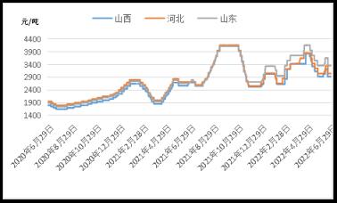 據(jù)云商平臺(tái)監(jiān)測(cè)數(shù)據(jù)顯示,截至6月30日,山西臨汾地區(qū)二級(jí)冶金焦含稅出廠(chǎng)價(jià)在2930元,與月初持平;唐山地區(qū)二級(jí)冶金焦含稅出廠(chǎng)價(jià)在3050元,與月初持平;山東淄博地區(qū)二級(jí)冶金焦含稅出廠(chǎng)價(jià)在3360元,與月初持平(詳見(jiàn)圖3)。