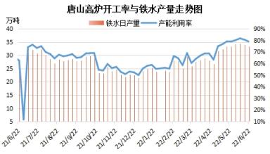 據(jù)網(wǎng)調(diào)研數(shù)據(jù)顯示:截至6月22日,唐山區(qū)域高爐產(chǎn)能利用率78.89%,環(huán)比上月下跌0.11個百分點;鐵水日均產(chǎn)量較上月減少0.05萬噸。