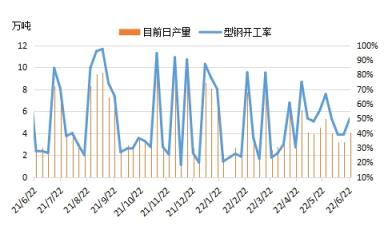 圖6 唐山型鋼開工率及日產(chǎn)量走勢圖